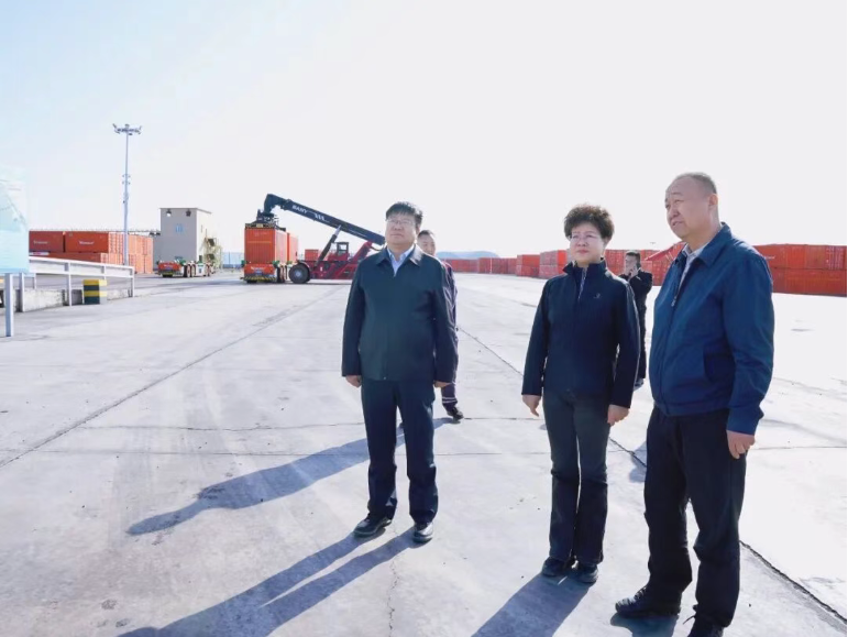 在策克口岸,黄雅丽调研了AGV无人驾驶跨境运输、过货通道、边民互市贸易等情况。她说,口岸通关过货能力、综合配套功能都有了新变化,要更大力度推进口岸现代化、智慧化、多元化发展,持续深化扩大AGV运输应用,加快推进跨境铁路等重大项目前期,全力做优做旺边民互市贸易,大力发展落地加工、现代物流、跨境旅游等产业,切实把通道优势转化为经济发展优势。